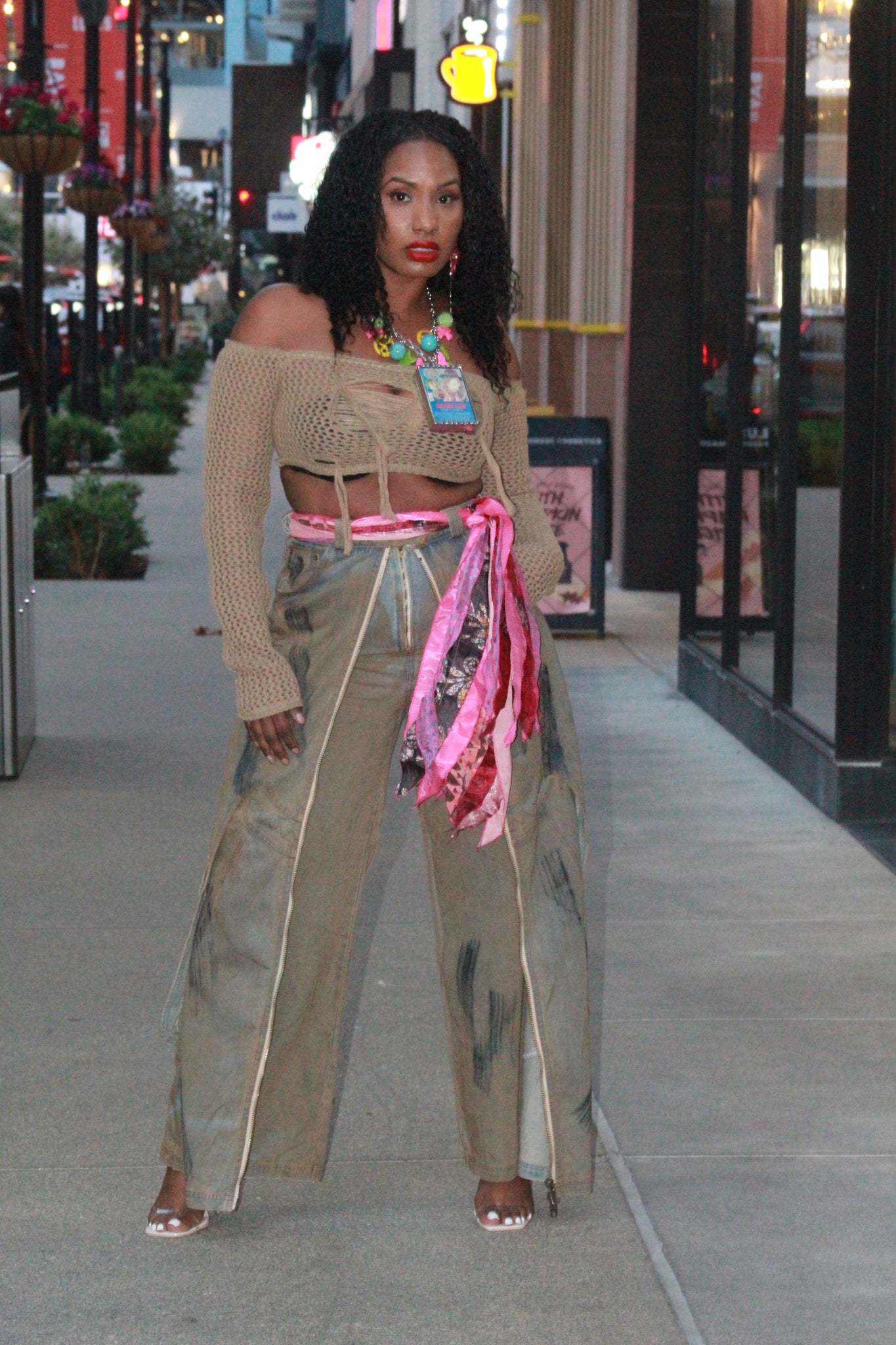 High Waist Denim Cargo Jeans that transform into a maxi skirt.