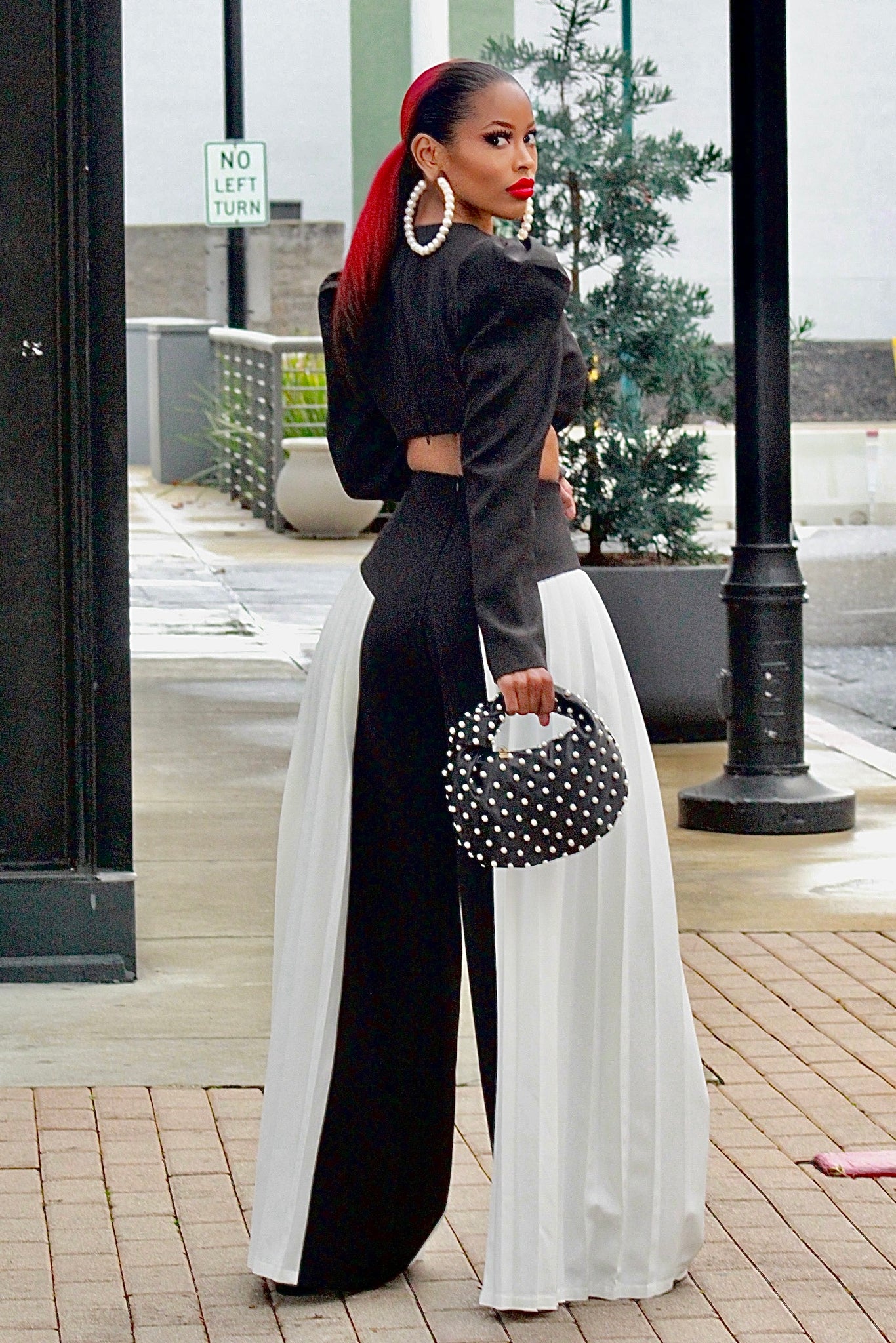Wide Leg Pleated Contrast Detail