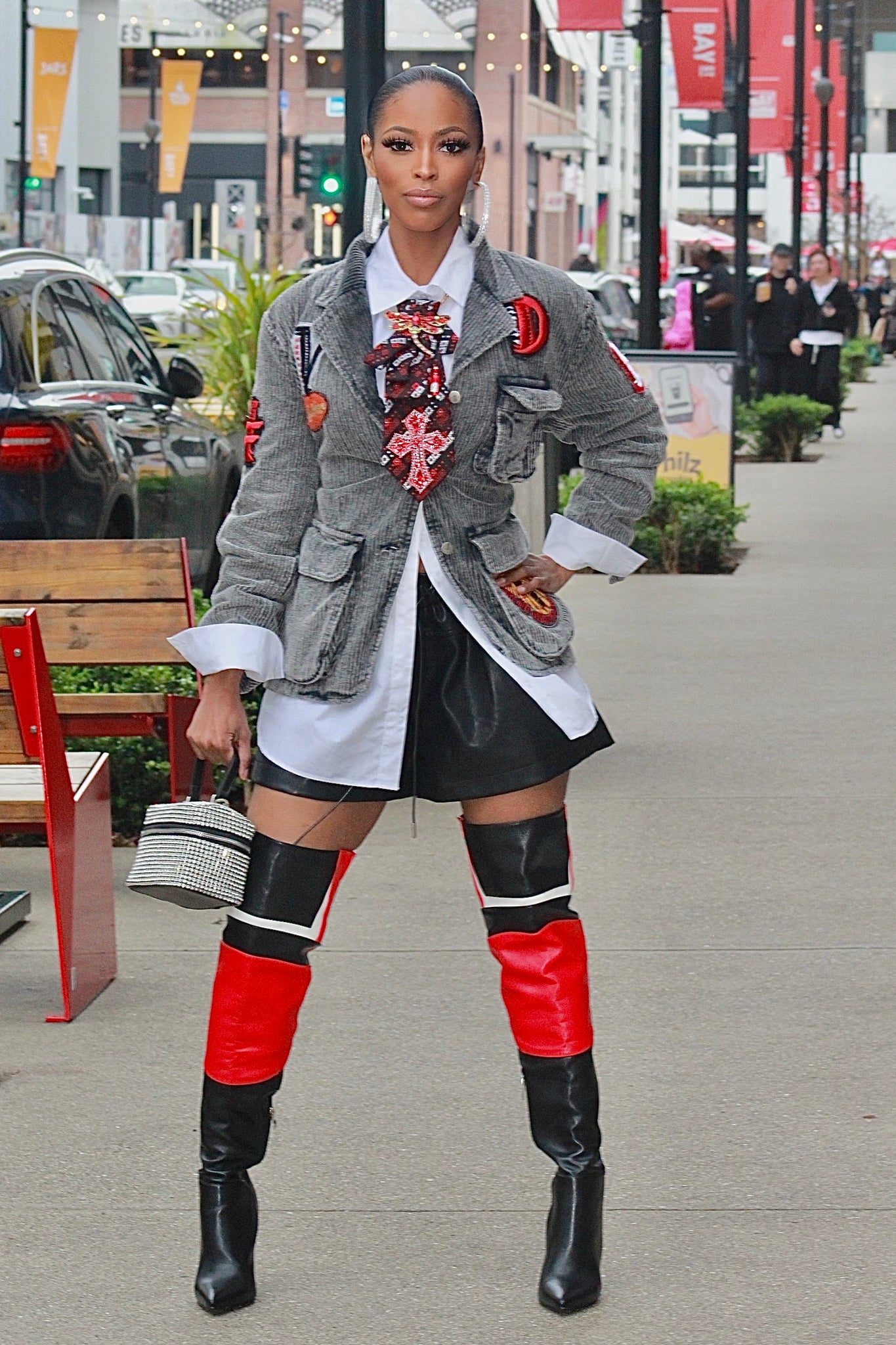 Elevate your wardrobe with this fashion-forward long sleeve button-down blazer crafted from thick, durable corduroy. Adorned with playful schoolgirl patches, it delivers a unique, preppy aesthetic perfect for those who dare to stand out. The boyfriend oversized silhouette offers a relaxed, effortless vibe while maintaining structure and sophistication. Note: This piece runs large and features no stretch, so we recommend sizing down. Our model is 5'6", wears a size 6, and chose a Small for the perfect fit.