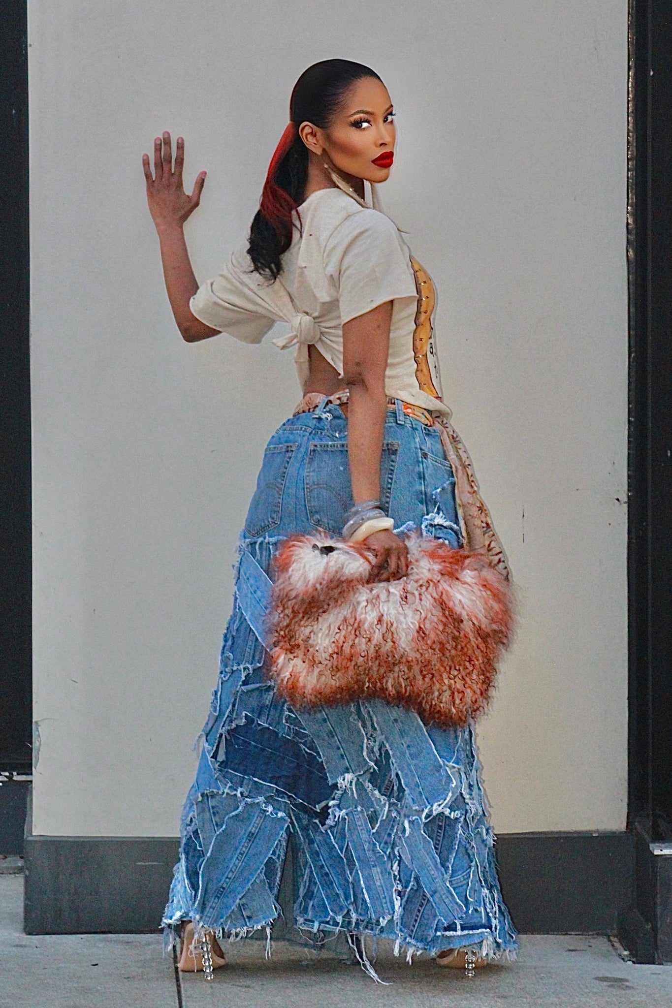 High Waist Denim Maxi Skirt with Denim
