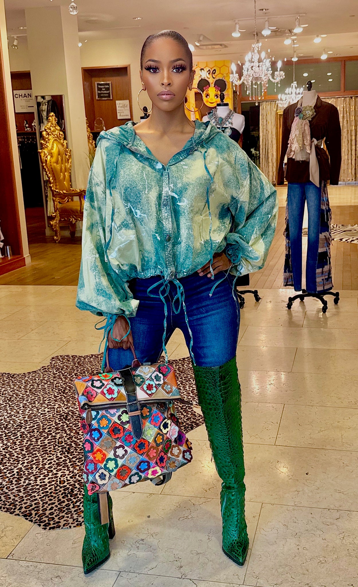 Hooded Drawstring Jacket with Buttons and Still I Rise Graphic